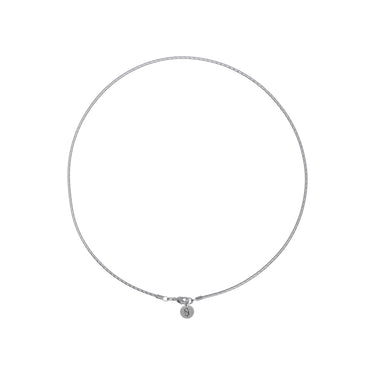 Мінімалістичний круглий ланцюг у холодному сталевому відтінку, який щільно прилягає до шиї та створює графічну лінію навколо декольте. Така форма підкреслює кулон і робить його центральним акцентом образу.