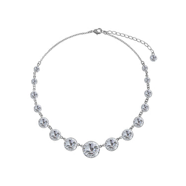 Кольє, яке працює як світловий прожектор для зони декольте. Кристали різного розміру утворюють м’яку хвилю блиску – від делікатних до акцентних, створюючи ефект дорогої, але легкої прикраси. Носіть його з маленькою чорною сукнею, білою сорочкою чи відкритим топом – у будь-якому варіанті воно моментально робить образ “вау”.