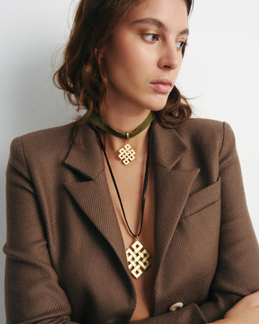 Сучасна інтерпретація оберега: head chain із вузлом нескінченності підкреслює індивідуальність і додає образу «того самого» акценту. Прикраса легко адаптується — регулюй посадку під вільне волосся, низький хвіст чи високу зачіску. Це деталь, яка працює і в денному мінімалізмі, і на вечірніх подіях.
