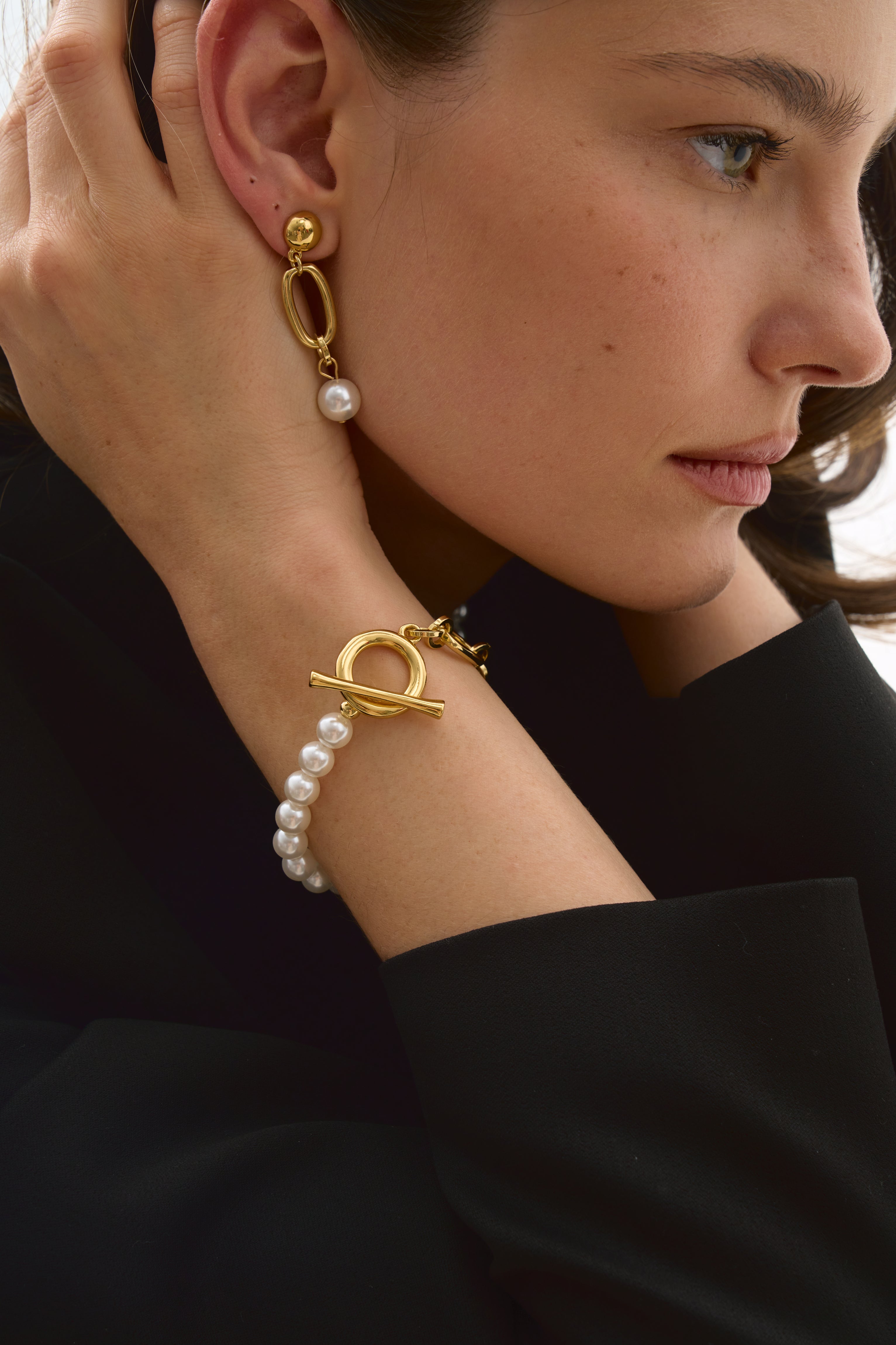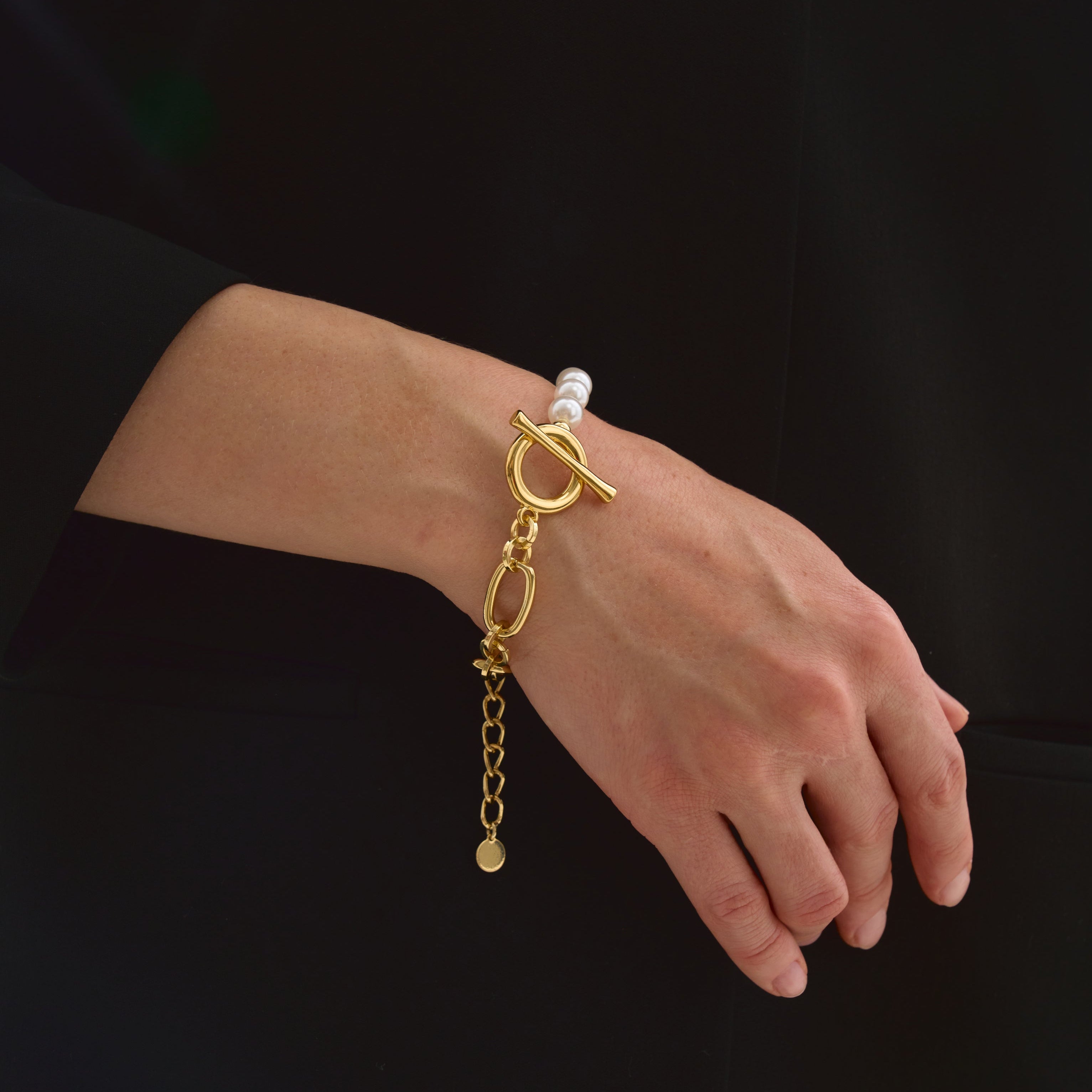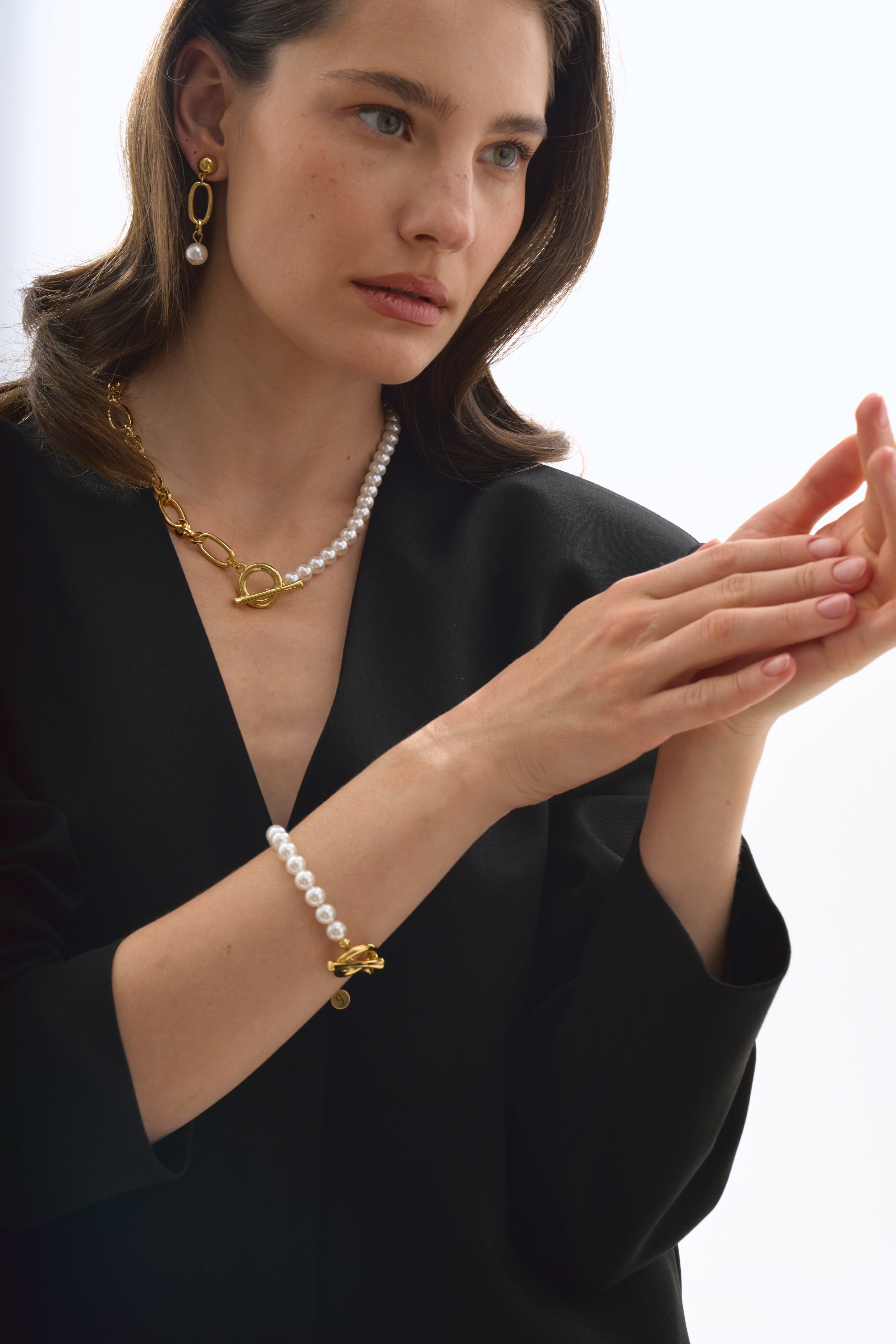 Вишуканий браслет із перлинами на елегантному ланцюжку випромінює ніжність і шарм. Рухливі перлинки м’яко переливаються на руці й додають образу делікатної розкоші. Ідеальний аксесуар, щоб підкреслити жіночність у повсякденному чи святковому стилі.