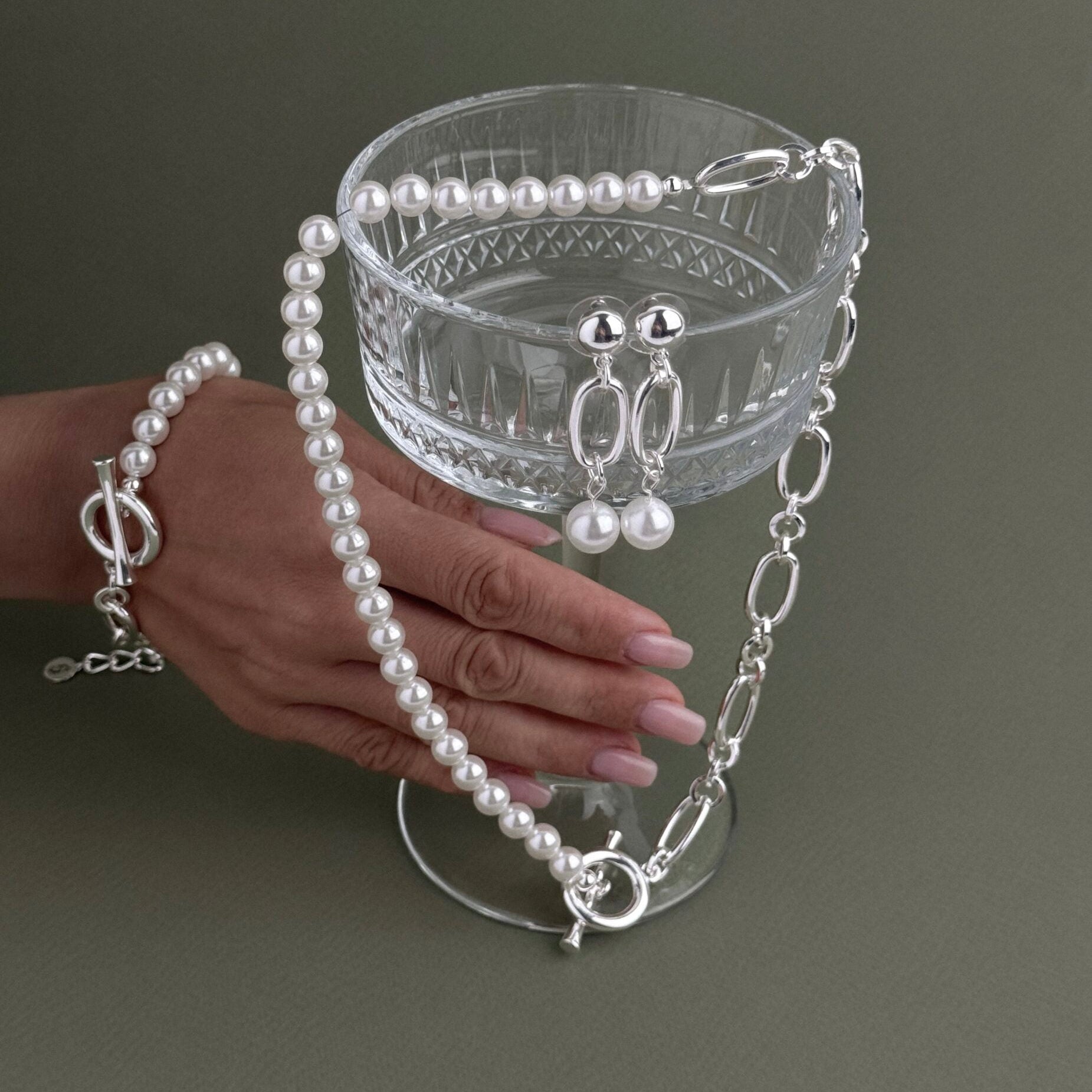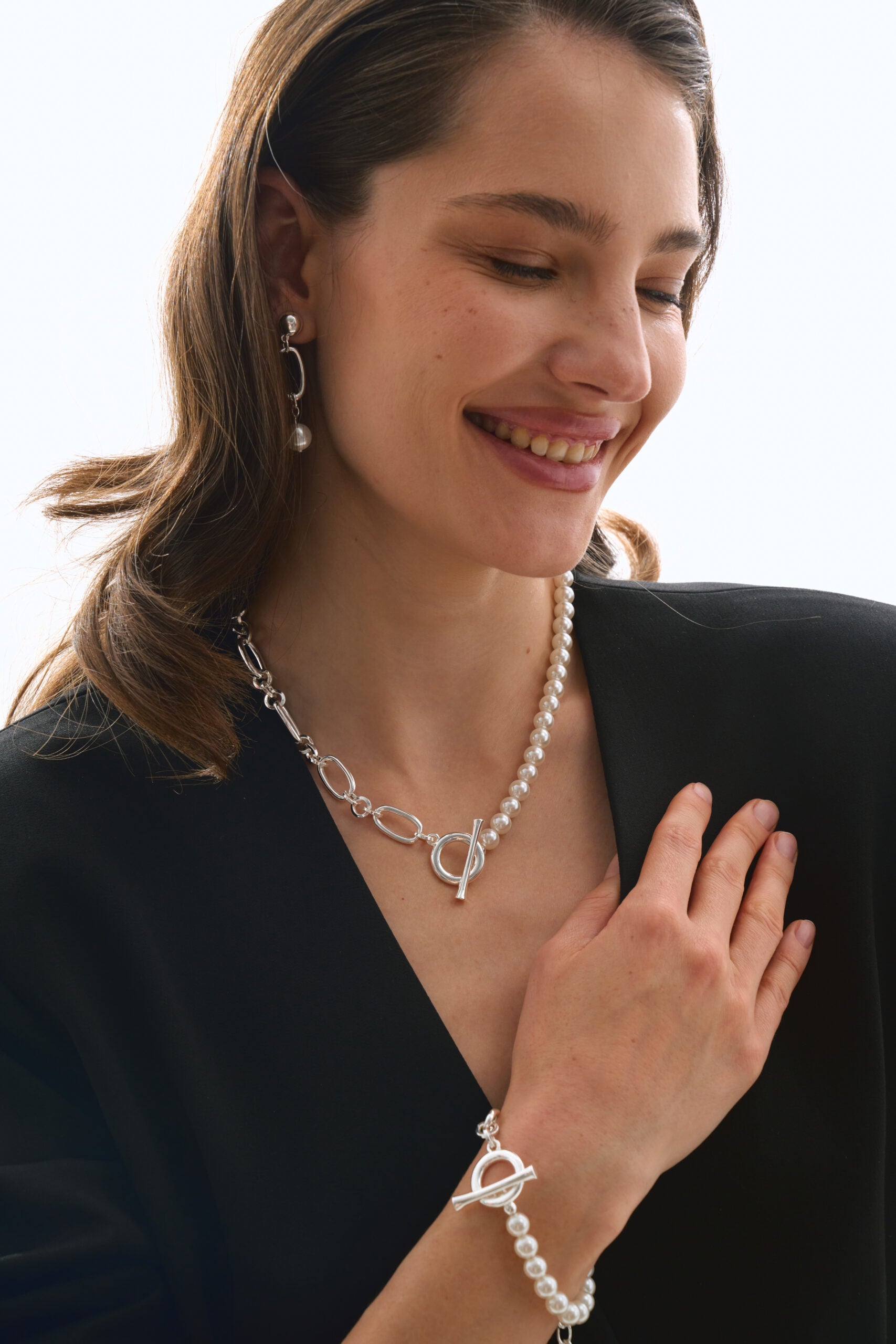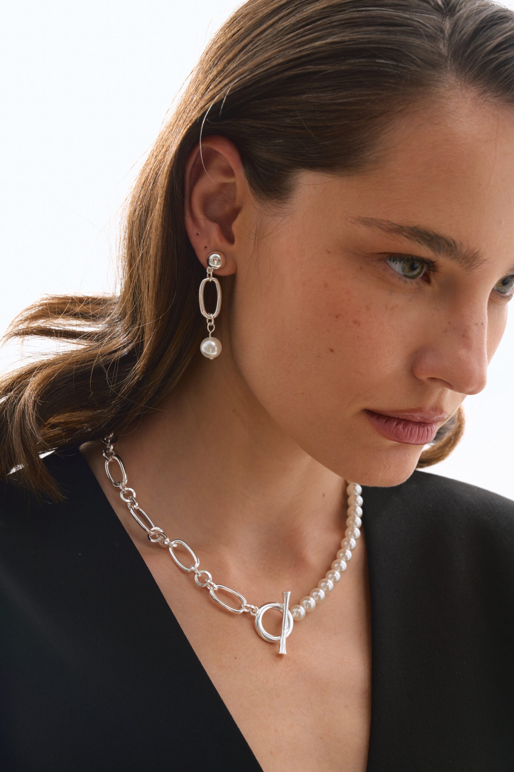 Наше кольє з перлинами — це лаконічна класика, що додає образу вишуканості й м’якого блиску. Мінімалістичний дизайн дозволяє носити його і щодня, і на особливі події, а також легко комбінувати з іншими прикрасами.