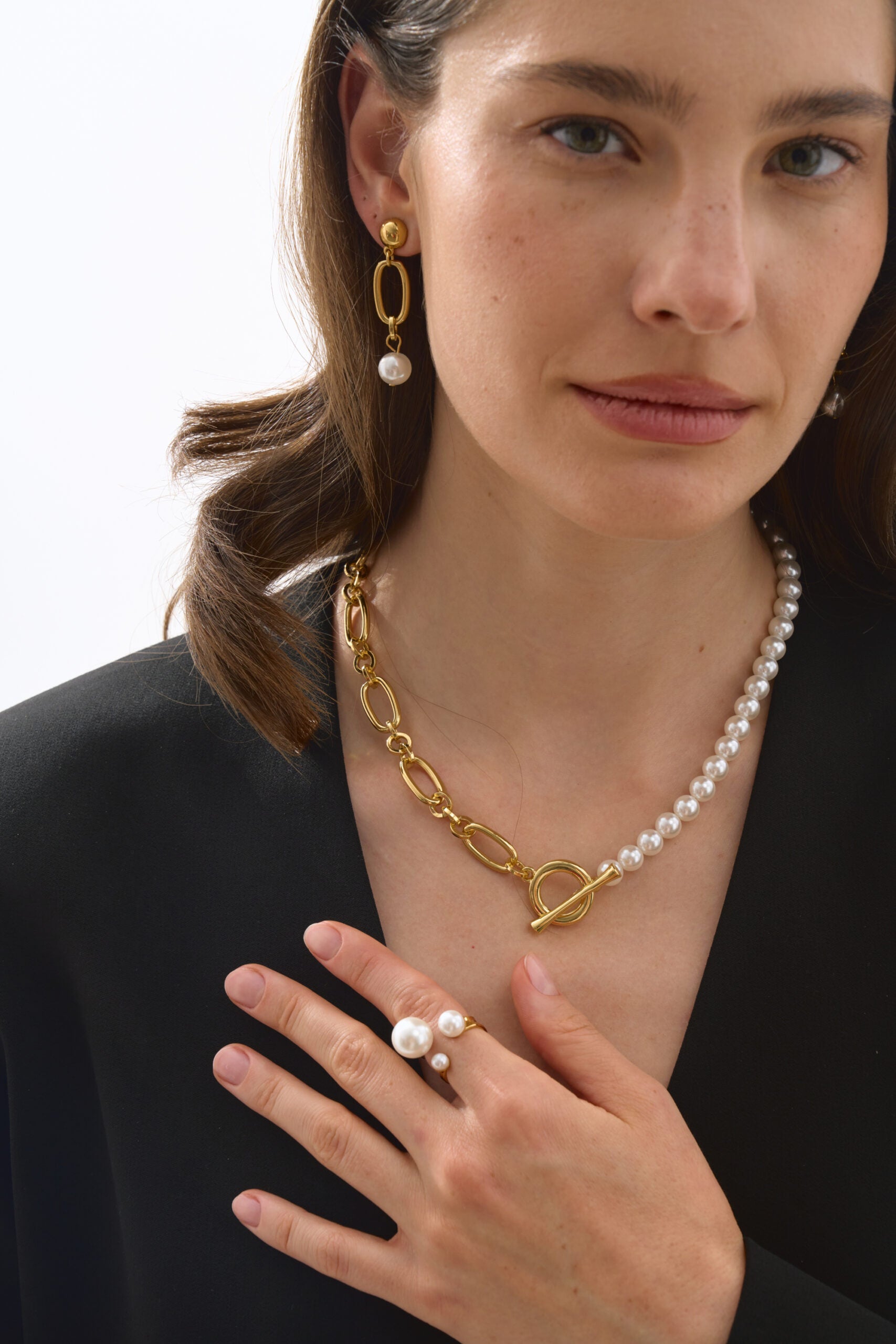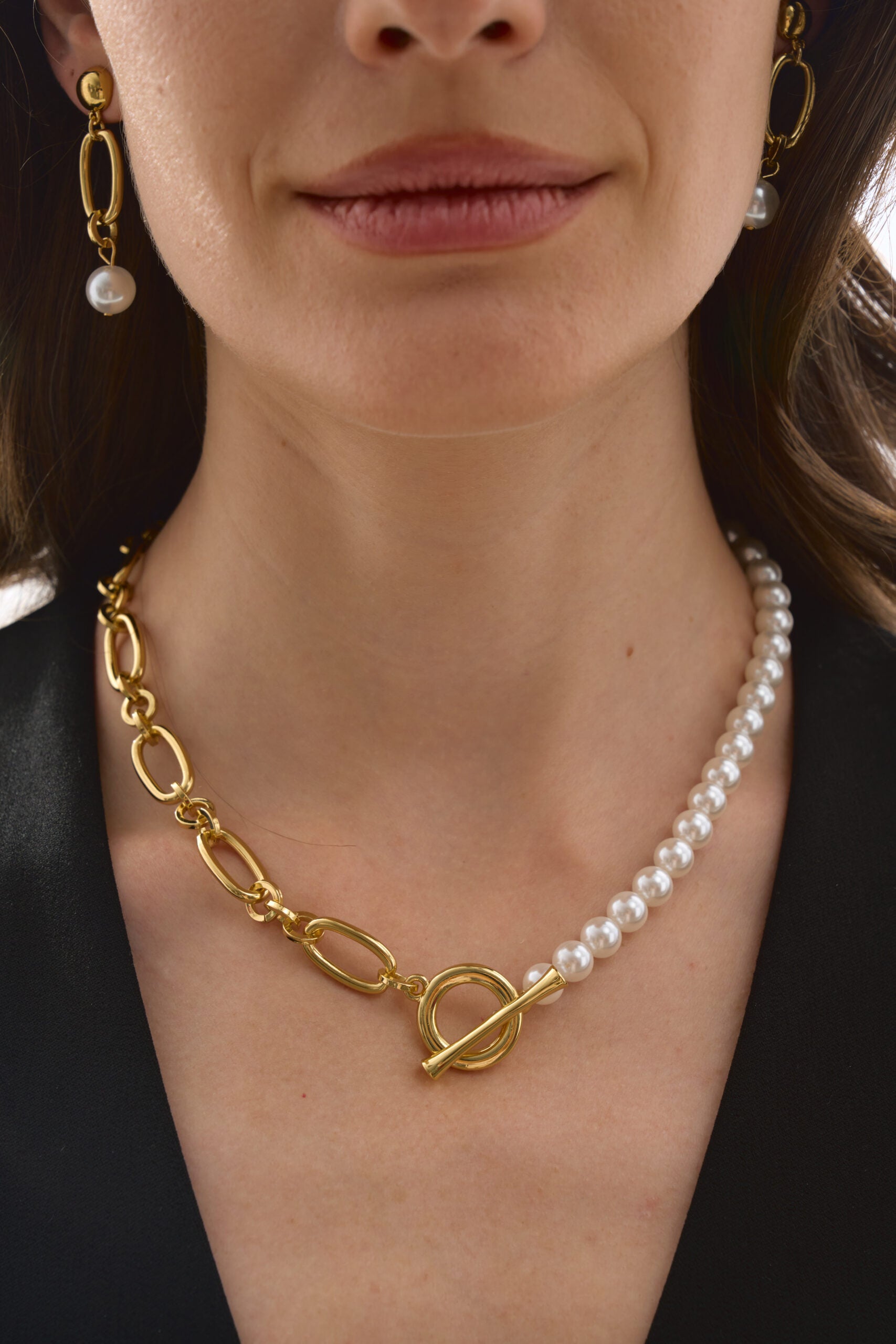 Наше кольє з перлинами — це лаконічна класика, що додає образу вишуканості й м’якого блиску. Мінімалістичний дизайн дозволяє носити його і щодня, і на особливі події, а також легко комбінувати з іншими прикрасами.