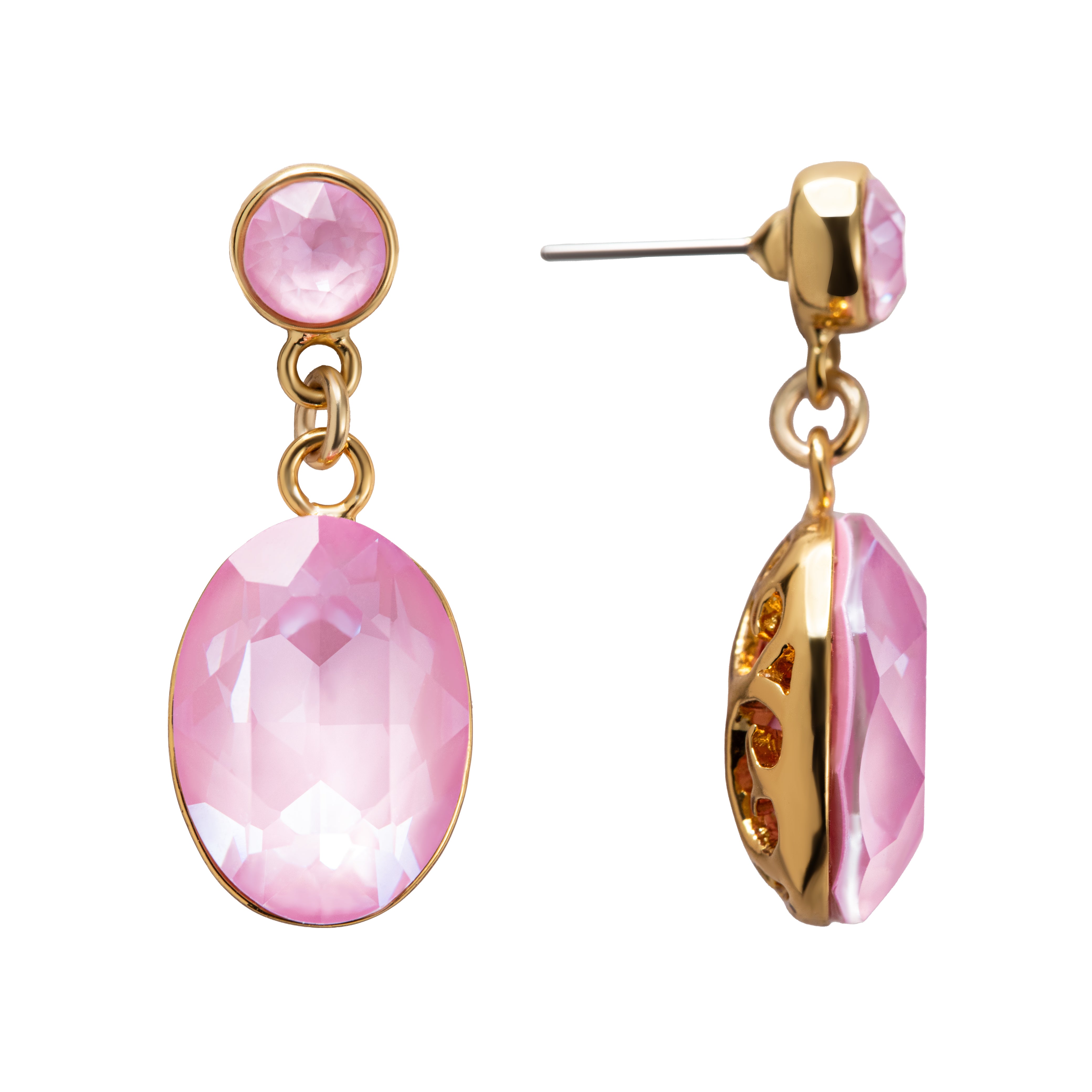Ніжні сережки з рожевими кристалами в золотому обрамленні — акцент, який одразу “оживляє” обличчя. Фасетована крапля красиво ловить світло, а теплий відтінок рожевого підкреслює рум’янець і м’якість рис. Легкі, жіночні й святкові — для образів, де хочеться більше романтики й блиску.