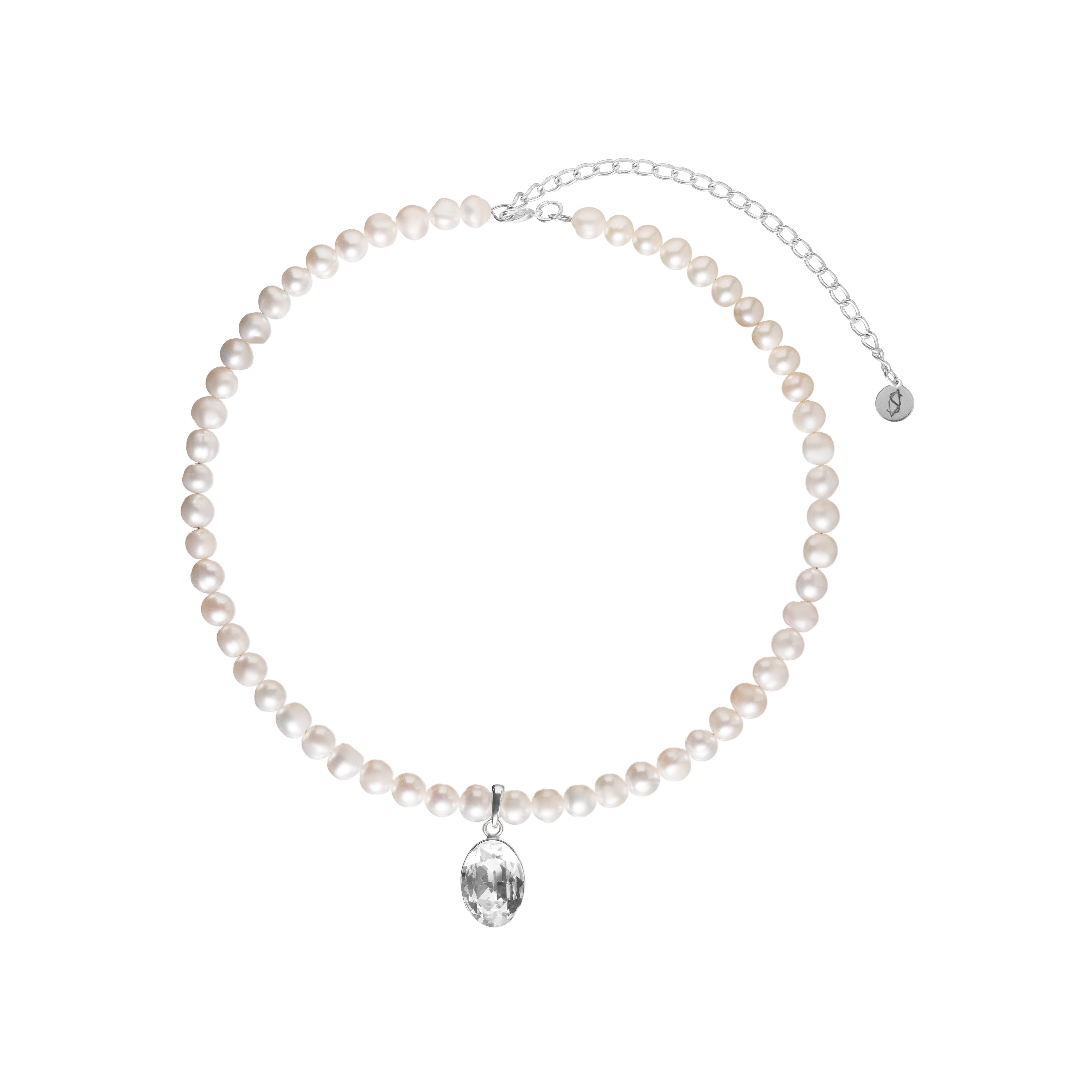 Ніжне перлинне кольє з кристалом — прикраса, яка одразу робить образ дорожчим. Натуральні перлини створюють класичну, дуже жіночну лінію, а прозорий кристал у срібній оправі додає блиску й сучасності. Завдяки подовженню-ланцюжку кольє можна регулювати під виріз одягу — від повсякденного светра до вечірньої сукні. Ідеальний варіант для подарунка або “просто собі”, коли хочеться виглядати витончено без зайвих зусиль.