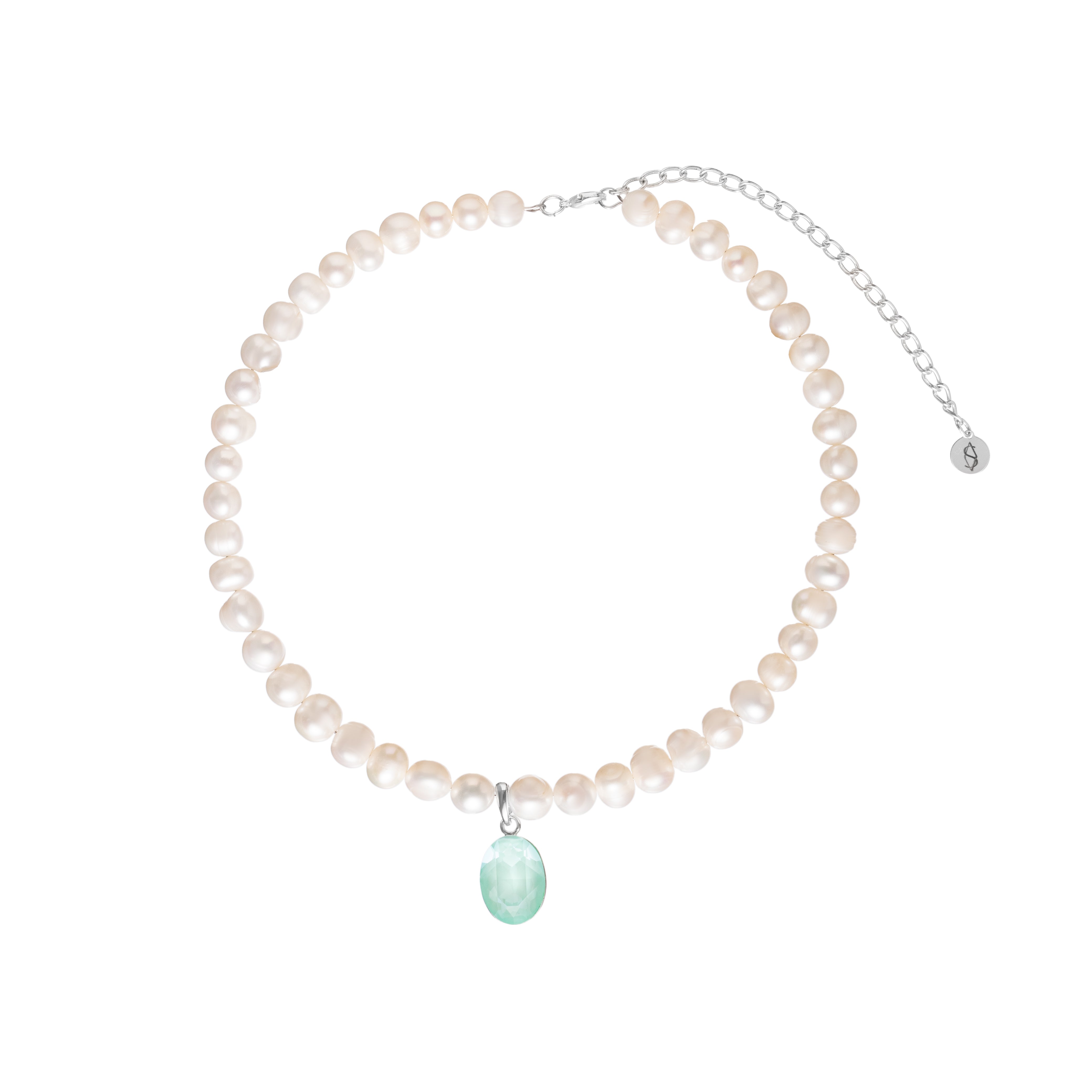 Ніжне перлинне кольє з м’ятним каменем — прикраса, яка освітлює погляд. Світлий відтінок підвіски красиво підкреслює зелені, карі й блакитні очі, роблячи їх виразнішими. Натуральні перлини додають класики, срібний фурнітурний відтінок — прохолоди й сучасності. Завдяки регулюванню по довжині кольє легко підлаштувати під будь-який виріз. Ідеальний акцент, коли хочеться виглядати свіжо, дорого і дуже жіночно.