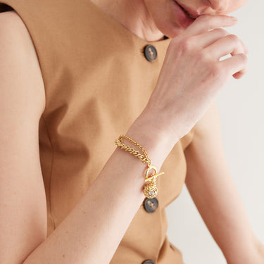 Цей браслет — як пауза в русі. Крихітна сфера обертається на зап’ясті, нагадуючи: спокій — це теж сила. Для жінки, яка завжди відчуває себе вдома, навіть у хаосі.