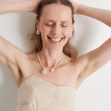 Масивний ланцюг — про ґрунт під ногами. Ажурна сфера — про м’якість у силі. Це кольє не про прикрасу, а про стан: я знаю, хто я. І не боюся світу.