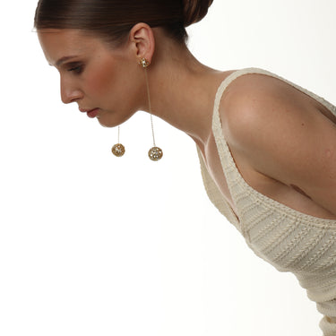 Ці сережки — як гравітація: ніжно тягнуть погляд донизу, але залишають легкість. Вони про шлях: від голови — до серця. Для жінки, яка рухається крізь життя легко, залишаючи післясмак.