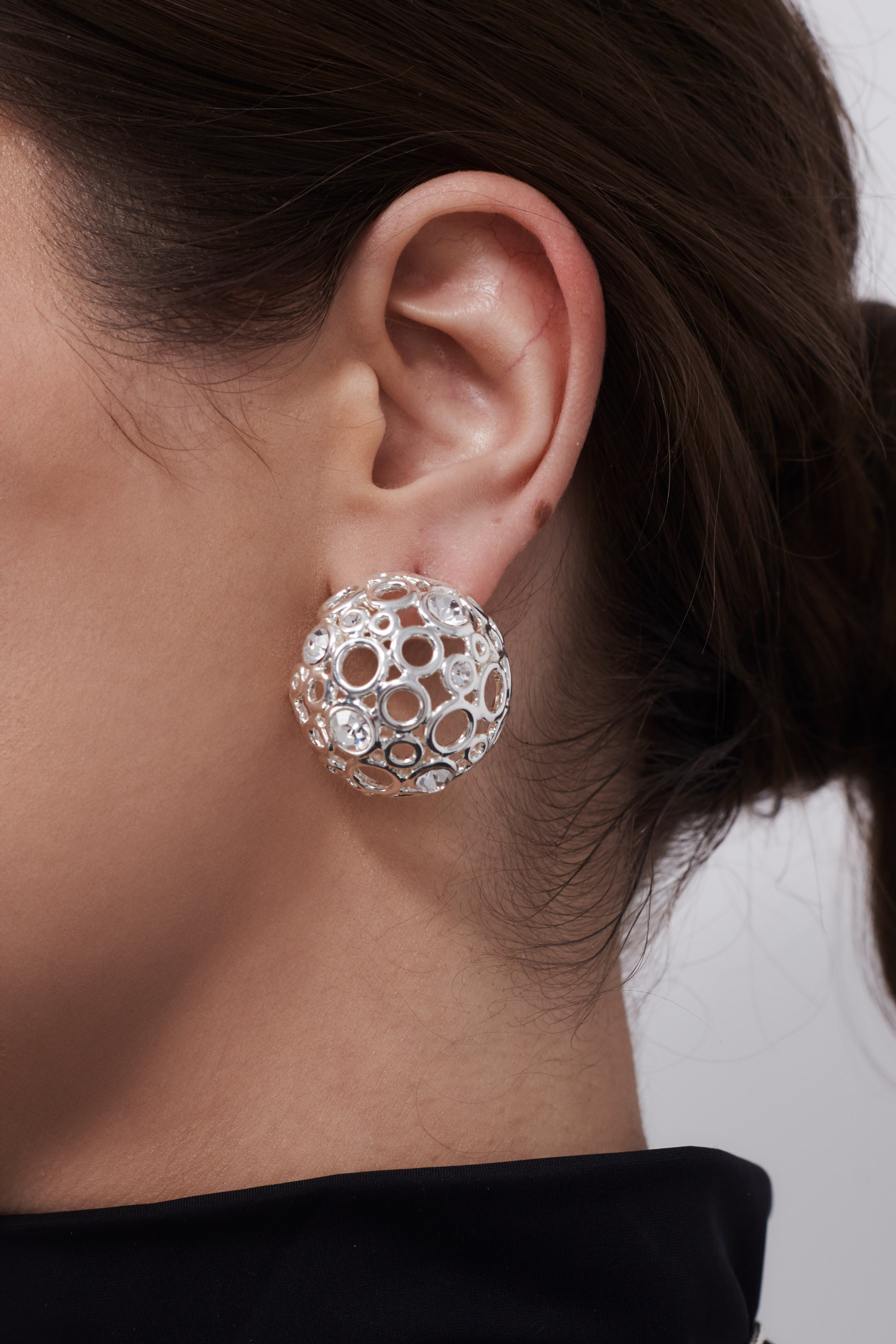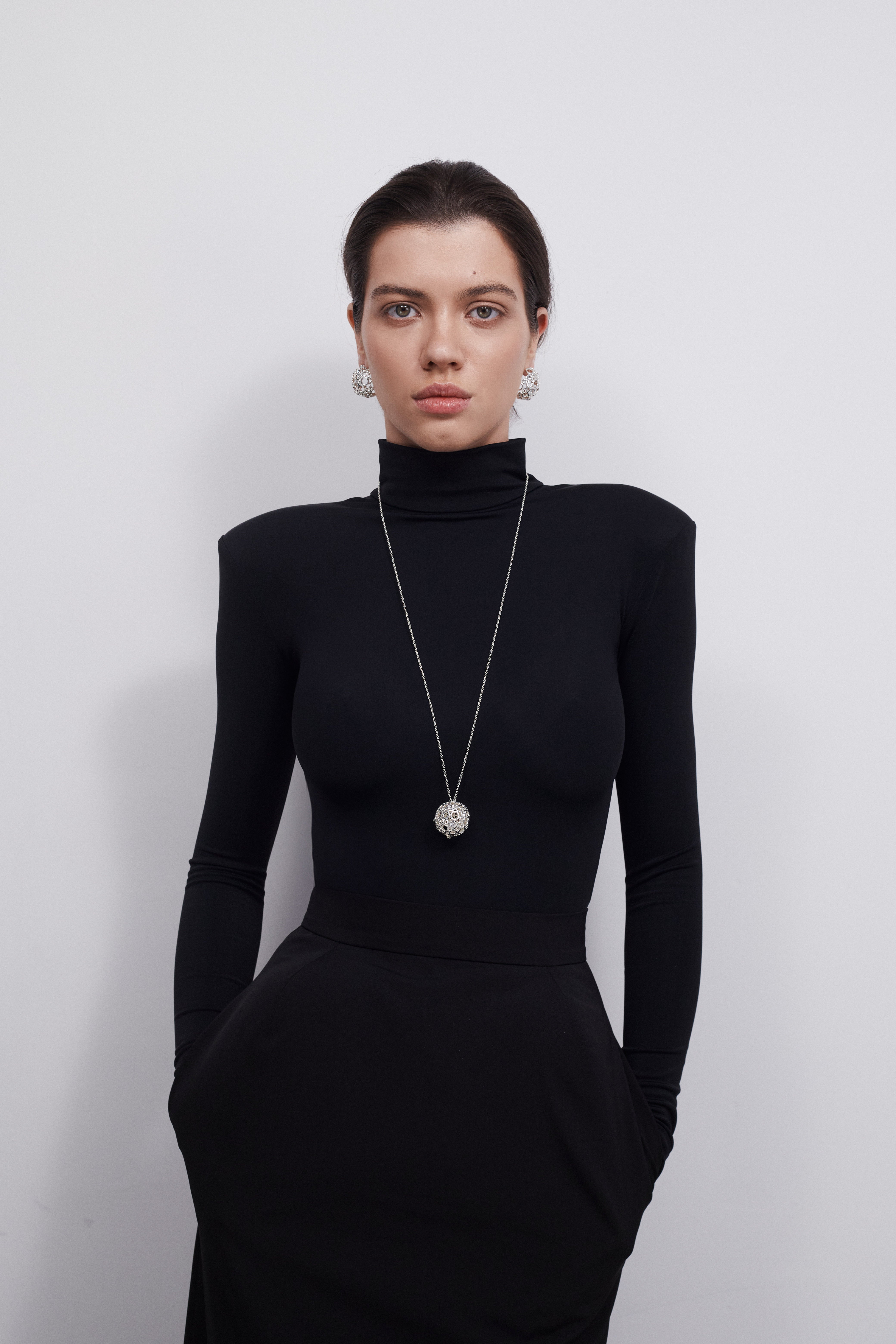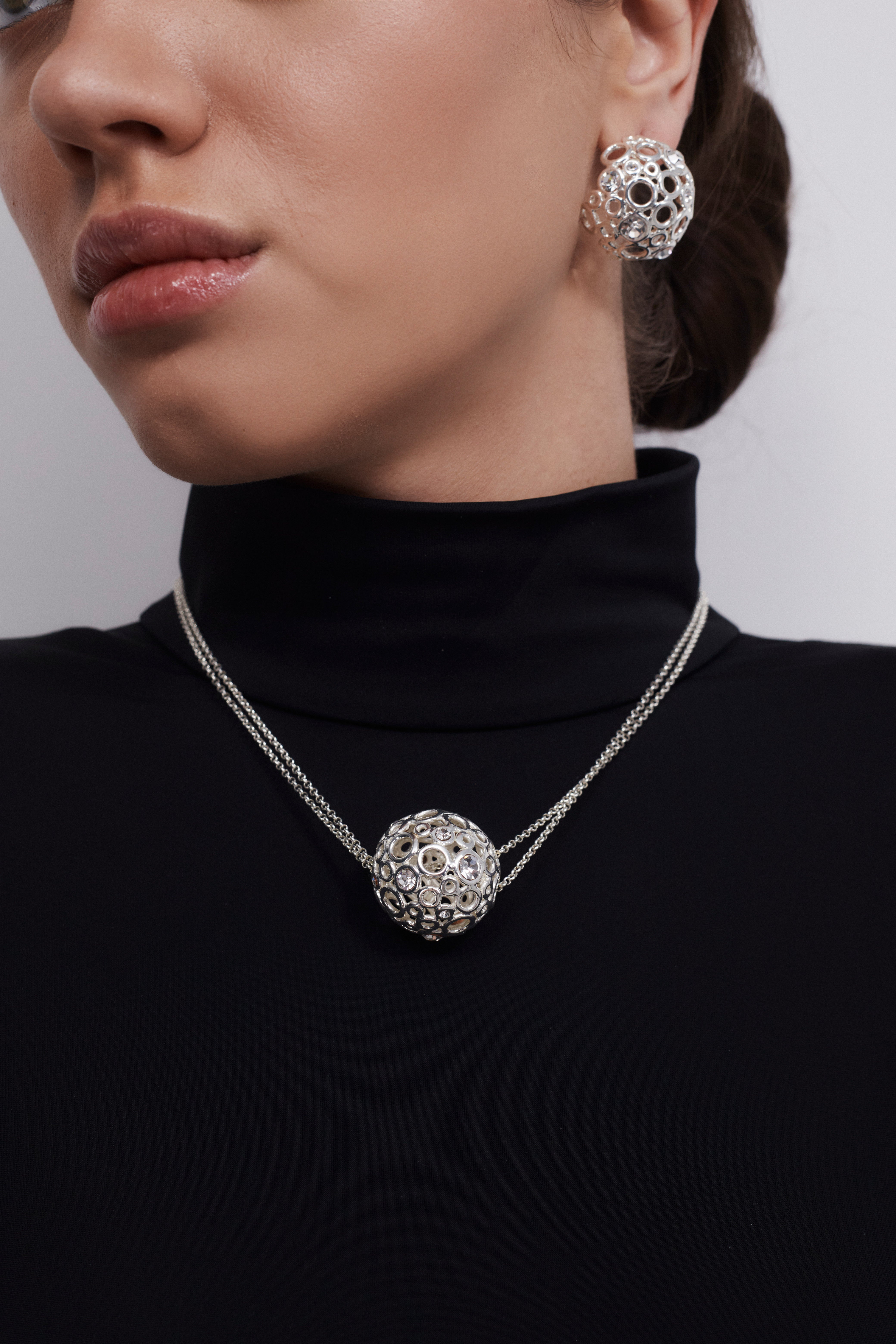 Ці сережки — наче мікропланети, що зберігають у собі світло. Створені для жінки, яка не боїться бути поміченою. Об’єм, вага, блиск — усе про силу й впевненість. Вони не доповнюють образ — вони ним керують.
