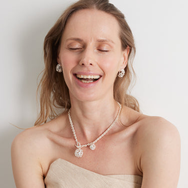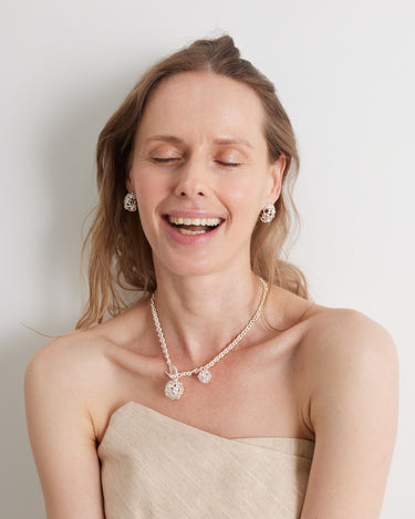 Ці сережки — мов точка світла у просторі: лаконічні, але сповнені характеру. Вони для жінки, яка не кричить про свою силу, але завжди знає, хто вона. Делікатна форма, вивірене сяйво — деталь, яка не просто прикрашає, а надає впевненості.
