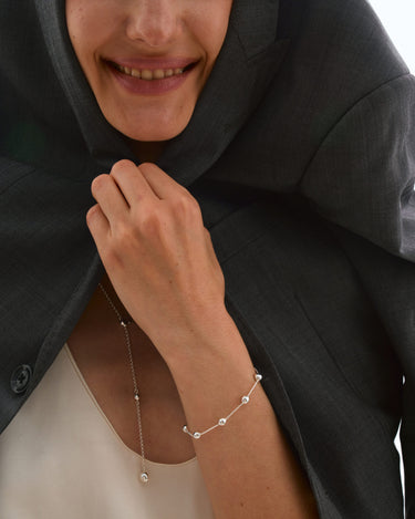 Ніжний дизайн браслета дозволяє створити стильний кежуал лук, який підкреслить вашу індивідуальність та бездоганний смак. Вишукані металеві кульки надають браслету легкості та елегантності, роблячи його універсальним аксесуаром для будь-якої події.