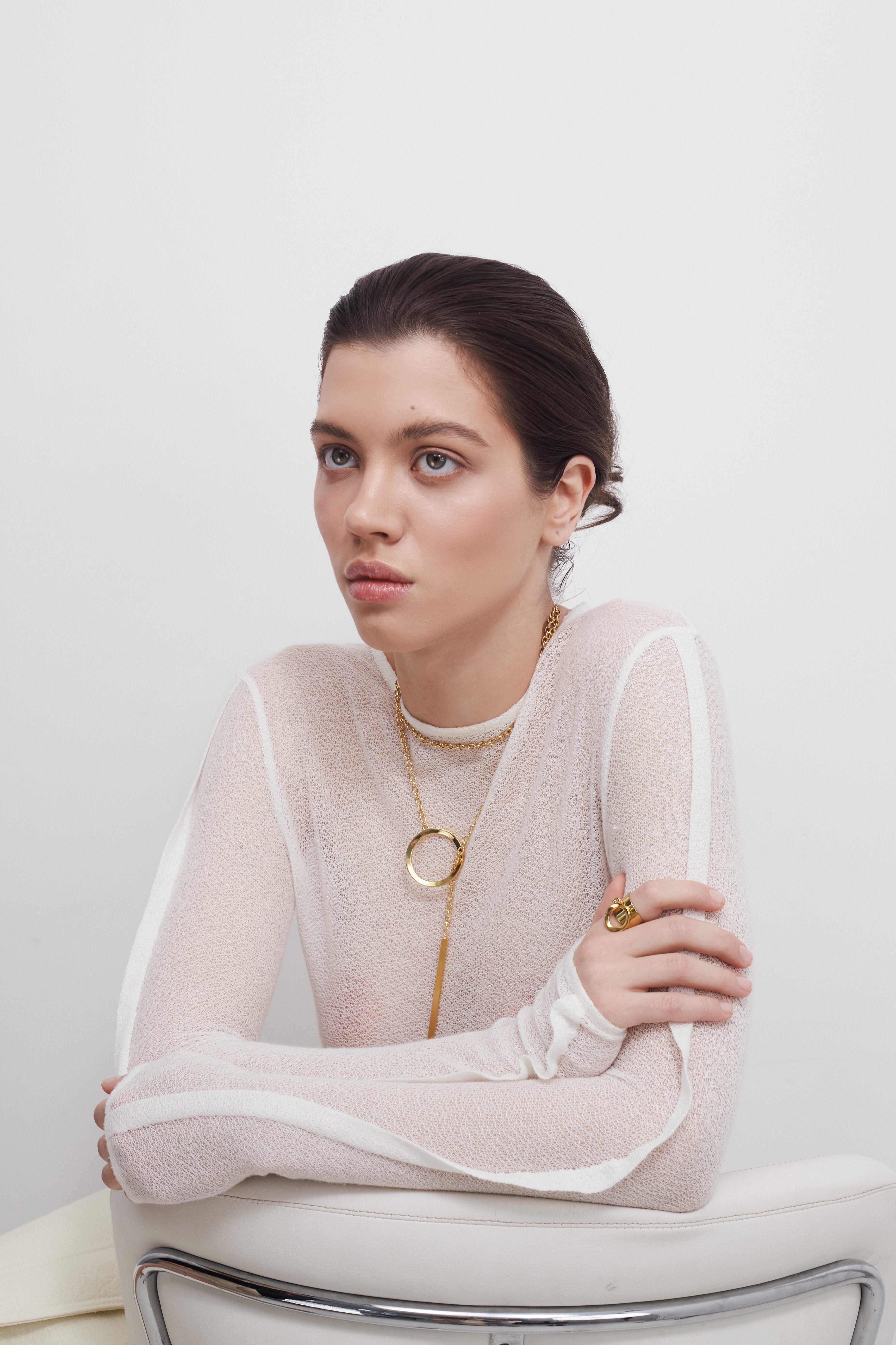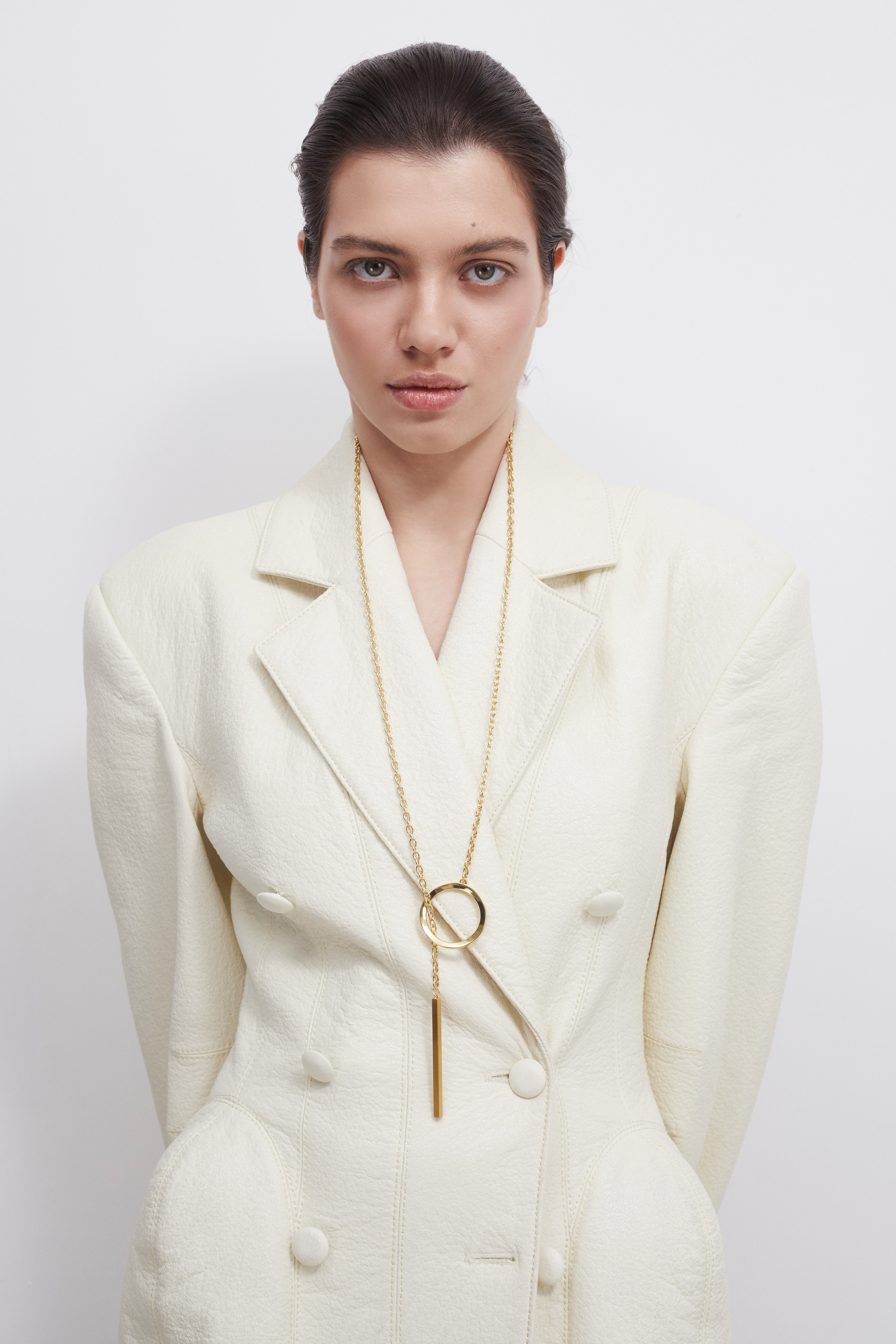 Родзинка колекції, кулон поєднує в собі дві основні форми колекції - коло і пряму.