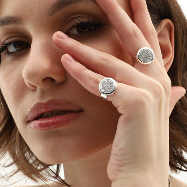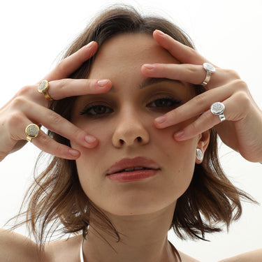 Каблучка Soluna — поєднання сили сонця й таємниці місяця; форма нагадує про циклічність природи та енергію кожної миті. Лаконічний акцент, що підкреслює внутрішню гармонію й стиль жінки, у якій сила поєднується з ніжністю.