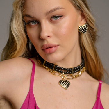 Унікальне кольє з натуральних каменів матового онікса, повністю зібране вручну. Основний вплив мінералу на нервову систему, де він допомагає в боротьбі з депресією, нервовим напруженням, покращує настрій, допомагає зберігати самоконтроль. Серце вручну розписано італійською емаллю з використанням австрійських каменів.