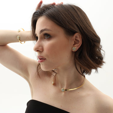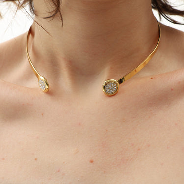 Елегантний чокер, що втілює гармонію світла та тіні. Його лаконічний дизайн додає виразності образу, підкреслюючи силу та витонченість власниці. Як сонце і місяць змінюють одне одного, так і цей аксесуар підходить і для денних, і для вечірніх луків.