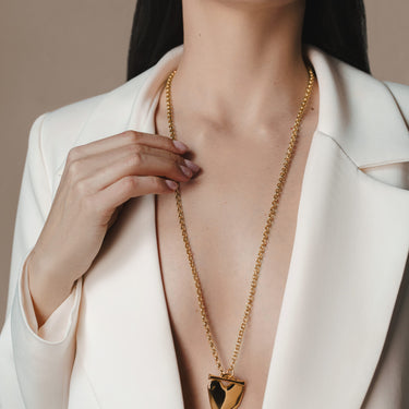 Довге намисто з серцем — універсальний акцент, що поєднує класику й сучасність та підкреслює індивідуальність. Носіть подвійною петлею на шиї, як пояс або як аксесуар на сумку — один виріб, кілька стильних способів.
