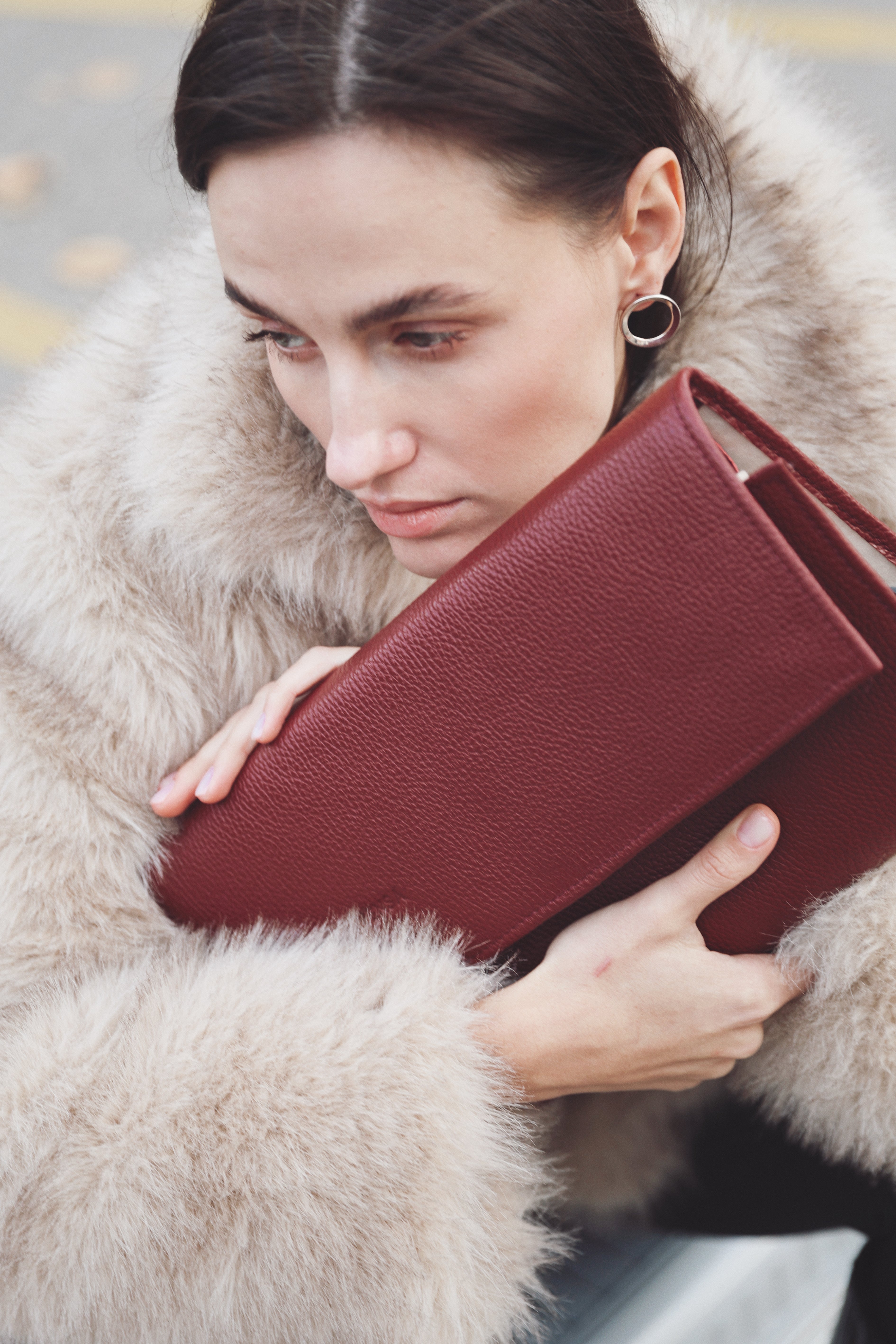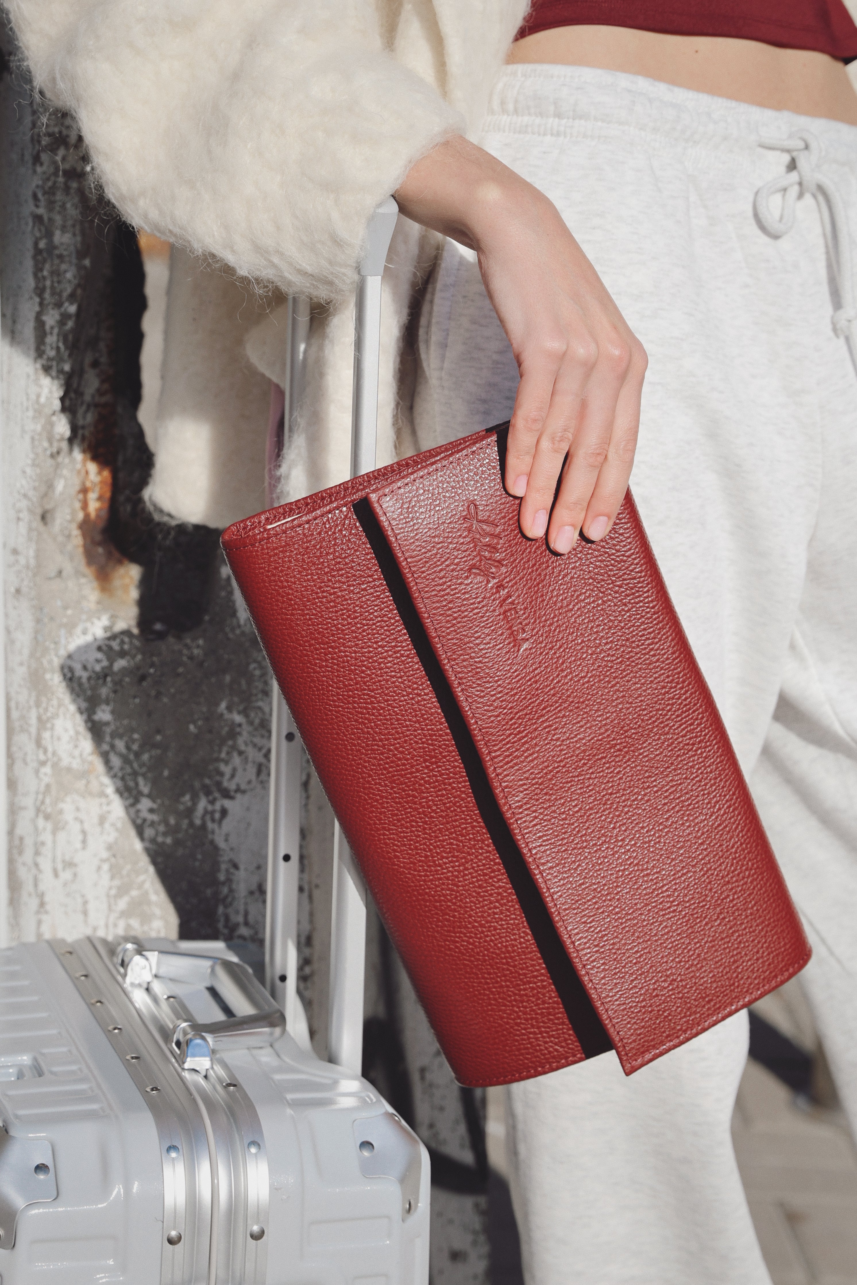 Зовні — 100% зерниста шкіра ягідно-червоного кольору