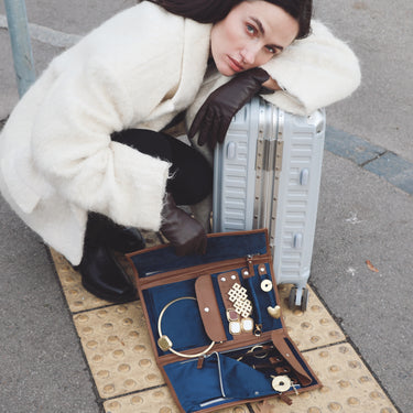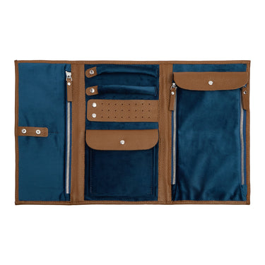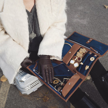 Шкіряний органайзер для прикрас, розроблений у колаборації VENSA x HOLIDAY. Включає шість різних відділень для різного формату прикрас: дві кишені для браслетів, дві смужки для нанизування каблучок, три ряди для сережок, конверт для чокерів, кишеня із гачками для ланцюжків. Оздоблений всередині ніжним велюром, органайзер дбає, щоб усі прикраси були в безпеці від подряпин, а продумана система застібок забезпечує надійне кріплення.
