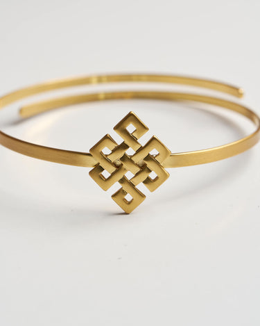 Браслет з вузлом нескінченності — про вибір, який ми робимо щодня. Легкий рух зап’ястям, і символ нагадує: усе, що віддаєш світові, повертається. Лаконічна геометрія, м’який блиск позолоти/посріблення та регульована посадка роблять браслет універсальним — від денних образів до вечірніх. Носи соло як тиху мантру або міксуй із годинником і тонкими ланцюжками.
