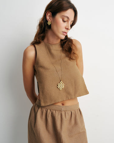 Сучасна інтерпретація оберега: head chain із вузлом нескінченності підкреслює індивідуальність і додає образу «того самого» акценту. Прикраса легко адаптується — регулюй посадку під вільне волосся, низький хвіст чи високу зачіску. Це деталь, яка працює і в денному мінімалізмі, і на вечірніх подіях.