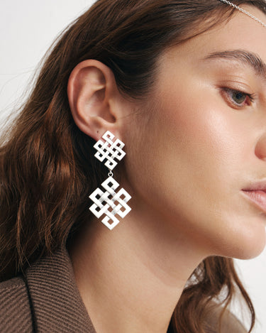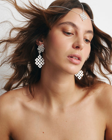 Сет сережок із вузлом нескінченності — від делікатних акцентів до виразних форм. Маленькі — для щодня й офісу, середні — для smart casual, великі — для подій, де хочеться сміливішого жесту. Легкі та збалансовані, вони не обтяжують мочки й тримають форму. Міксуй між собою пари та створюй свою історію карми.