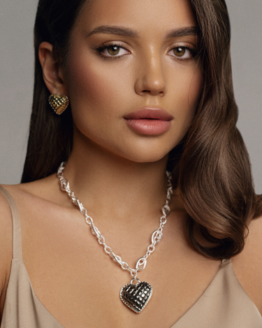 Намисто стане в нагоді для вечірнього образу. Унікальне біколорне намисто має три кольори металу - золото, срібло та чорний, що робить його ідеальним для ніжних образів, а також чорно-білих або теплих кольорів. Додайте браслет і різні варіанти сережок
